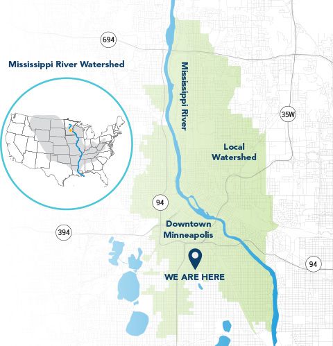 Stormwater runoff in this area drains directly into the Mississippi River. Keeping storm water on our site helps reduce pollutants in the river and reduces flooding downstream.