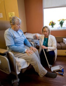 In the morning, your nurse care team will help you out of bed and into the recliner for breakfast. You will work with a physical therapist to progress through your therapy goals.