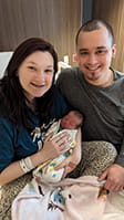 NEW ULM, Minn. (Jan. 02, 2024) — Bradley Carson Moldaschel was born at 7:19 a.m. Monday, Jan.1, making him the first baby born at New Ulm Medical Center this year. He has quite a birth story. Because he was due Saturday, Jan. 13, his mom, Alysia, didn’t think her initial pain at home meant she was in labor. When her water broke, she rushed to the Emergency Department at 6:50 a.m., and delivered Bradley 29 minutes later without an epidural. Both are doing well today.