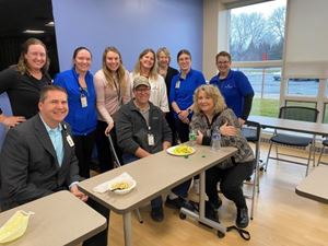 Svoboda and his wife were all smiles as they joined the team of Allina Health colleagues who helped save him during a celebration lunch in January. During the lunch, leaders credited the team’s training and dedication to care for the lifesaving, quick response.