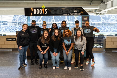 Sarto, Lilly, Devin, Jerry and countless other Roots for the Home Team teens are putting all of those skills to work at Allianz Field. They’re selling delicious salads at every home game, thanks in part to a partnership between MNUFC and Allina Health.