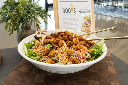 Among the traditional concession-stand fare of nachos, burgers and brats, you’ll find Lily and her coworkers at Roots for the Home Team selling their tasty Caesar Salad, a menu staple, and their Salad of the Match.