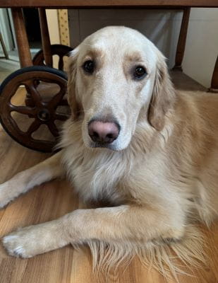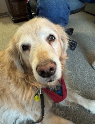 Laurie added Gus, another Golden Retriever, to her pack a few years ago. At three years old, he just passed his therapy dog test, and he is also a regular at Mercy Hospital.