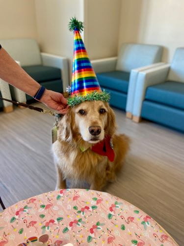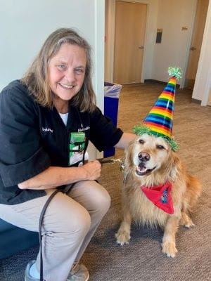 Her curiosity led her to ask questions. The next thing she knew, she had enrolled herself and her Golden Retriever Arthur in a 32-week class and achieved certification with Therapy Dogs International. After spending more than thirty years serving her community as an elementary school teacher and college professor, therapy dogs helped Laurie find a new path of service.