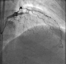 Coronary angiogram immediately following successful stenting of the occlusion using the reverse controlled antegrade and retrograde tracking (CART) technique. Allina Health Minneapolis Heart Institute was the first center in the Upper Midwest to use this novel approach to open chronic total occlusions and it now trains interventional cardiologists at other regional centers in using the technique.