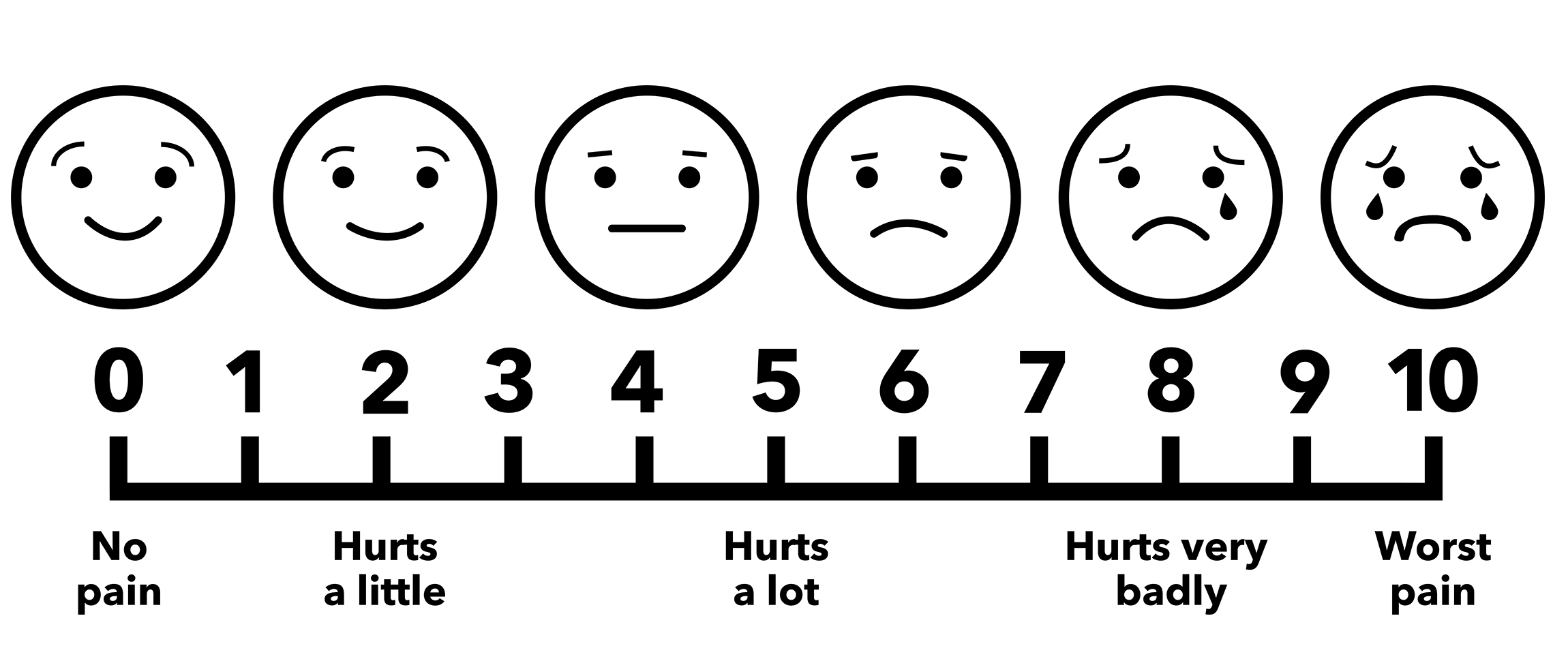 The goal is to keep your pain between a three to four, which is considered to be between "hurts a little bit" and "hurts a little bit more."