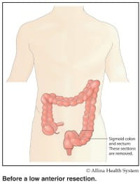 A low anterior resection removes the rectum and the sigmoid colon. The rest of the colon will be attached to the remaining part of the rectum. You may need to have an ostomy pouch, but this is usually only for a short time.