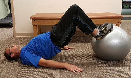 Elevated bridge: Perform the bridge with your feet on an elevated surface, like a chair. To further improve your balance, try it while resting your feet on an exercise ball.