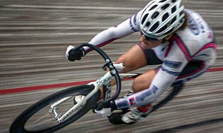 A track bicycle is very specialized. Our bikes have only one gear and it is fixed, meaning that if the bike is moving the pedals are turning. We can't coast. Also, there are no brakes on a track bike. Riders must use the banking or apply a backward pressure to the pedals to slow the bike. Finally, the most important piece of equipment is a helmet, required for all riding and racing.