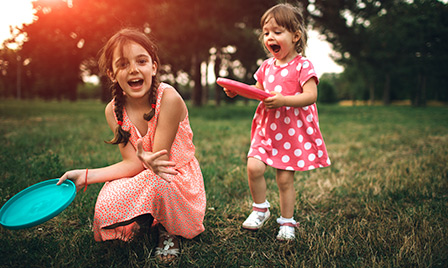 Mark a start line and various distances on the ground. Each child gets three attempts to see who can throw the Frisbee the farthest. Throwing technique should be flexible and match the child's abilities.