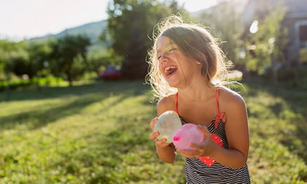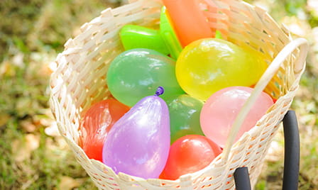 Get as many water balloons to the finish line in the shortest amount of time by carrying them in your sweatpants (while you're wearing them). Start the timer before your child fills his or her sweatpants with water balloons and stop the timer when they cross the finish line.