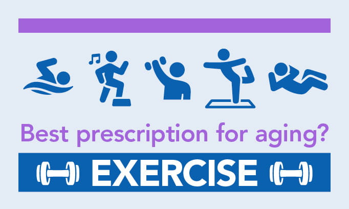 Leg lifts – You can exercise your hips with side leg lifts. Lie on your side and support your head with your lower arm. Keep your legs stacked and straight. Slowly lift your top leg as high as you can. Return to the starting position and repeat 10 to 15 times. Roll over and repeat with the opposite leg. If you prefer to stand, hold on to the back of a chair and lift and lower one leg to the side 10 to 15 times. Repeat with the other leg. This strengthens your hips, thighs and buttocks.