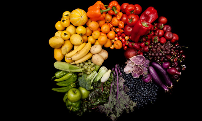 Plan your meals with fruit and veggies as the center. The goal should be seven to nine servings a day, but even five servings a day would improve most people's diet. Buying in-season fruit and veggies will give you the most nutritional bang for your buck.
