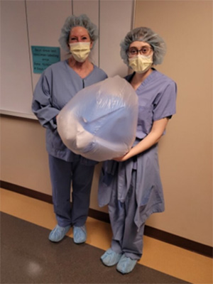 Left: Environmental Services Staff at New Ulm Medical Center collecting blue wrap waste (2023).