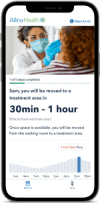 Share your mobile number at check-in to get personalized updates about your visit, including estimated wait times, answers to common questions, lab results and the ability to share real-time updates with your family. No sign-up or app download is needed.